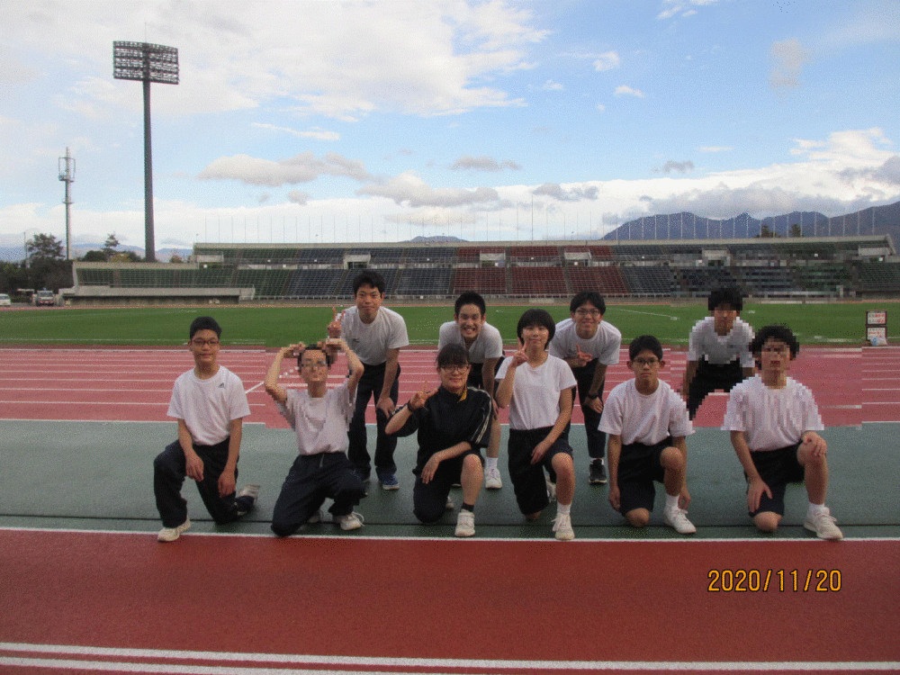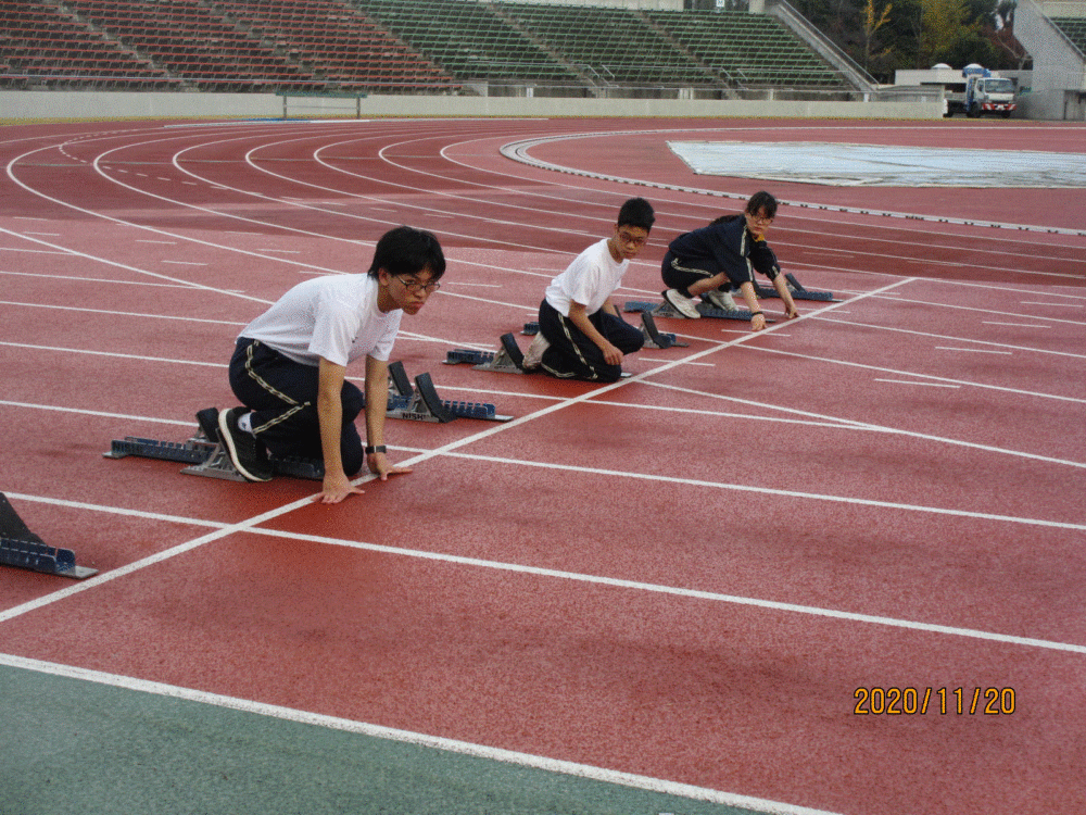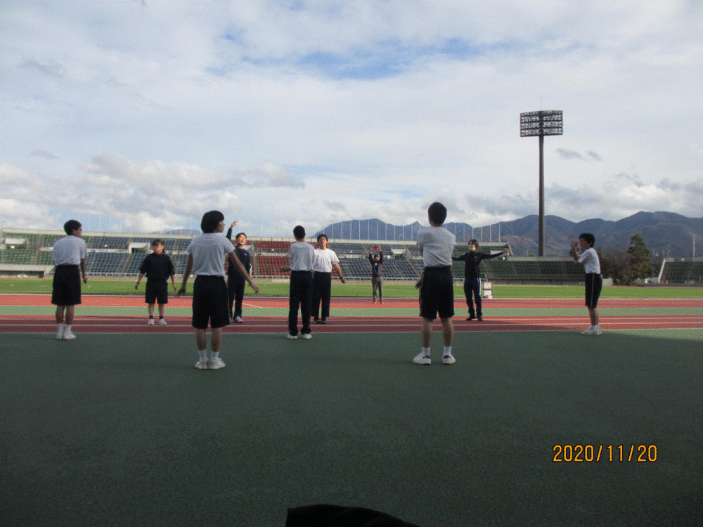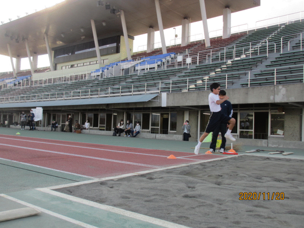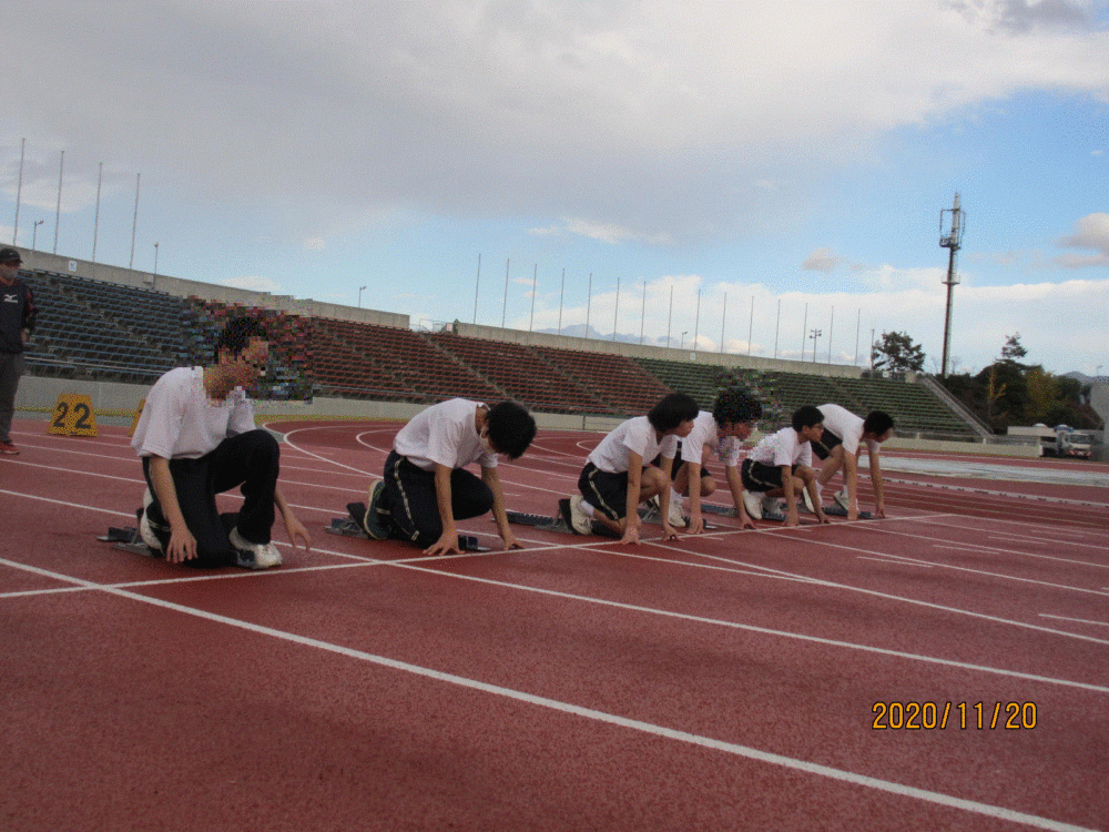 山梨県立ろう学校 > 活動の様子 > 陸上記録会(中学部・高等部) 2020年11月20日カテゴリー: 活動の様子 陸上記録会(中学部・高等部) 11月20日(金)の午後、小瀬陸上競技場で中学部・高等部陸上競技会が行われました。生徒たちは陸上競技専用の会場を使用するということで、緊張と期待から大変気合が入っている様子でした。また、雨も心配されましたが、生徒の日ごろの行いの良さもあり、晴れ間ものぞく気持ち良い天候の中で実施することができました。競技は、競争種目(50m・100m)、跳躍種目(走り幅跳び)、投てき種目(ジャベリックスロー。ソフトボール投げ)の3種目を行いました。本番では、緊張しながらも体育の時間に練習した成果を十分発揮することができ、充実した表情がみられました。スポーツの秋、大変貴重な体験ができました。