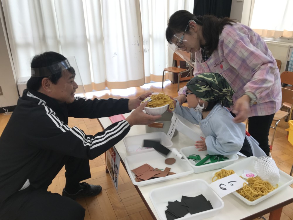 山梨県立ろう学校 > 活動の様子 > 幼稚部 お店屋さんごっこ 2020年11月26日カテゴリー: 活動の様子 幼稚部 お店屋さんごっこ 幼稚部のプレイルームにお店屋さんが開店しました。 ケーキ屋さん、ラーメン屋さん、ピザ屋さんです。お店屋さん役、お客さん役になって遊びました。 「〇〇をください」「ありがとうございました」など、商品やお金の受け渡しのやり取りをしながら、お店の仕事や買い物を楽しみました。 お母さんや小学部のお友達、校長先生もお店に来てくれてうれしかったね。