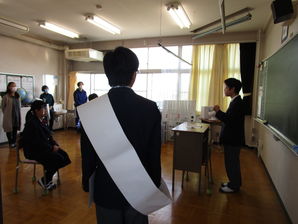 令和3年度の生徒会役員選挙に向けて、立候補者と推薦者が昼休みを使って、中高の各教室を回って遊説を行っています。各候補とも公約を掲げ、より良い生徒会を目指して真剣に活動しています。立会演説会と投開票は12月4日(金)です。
