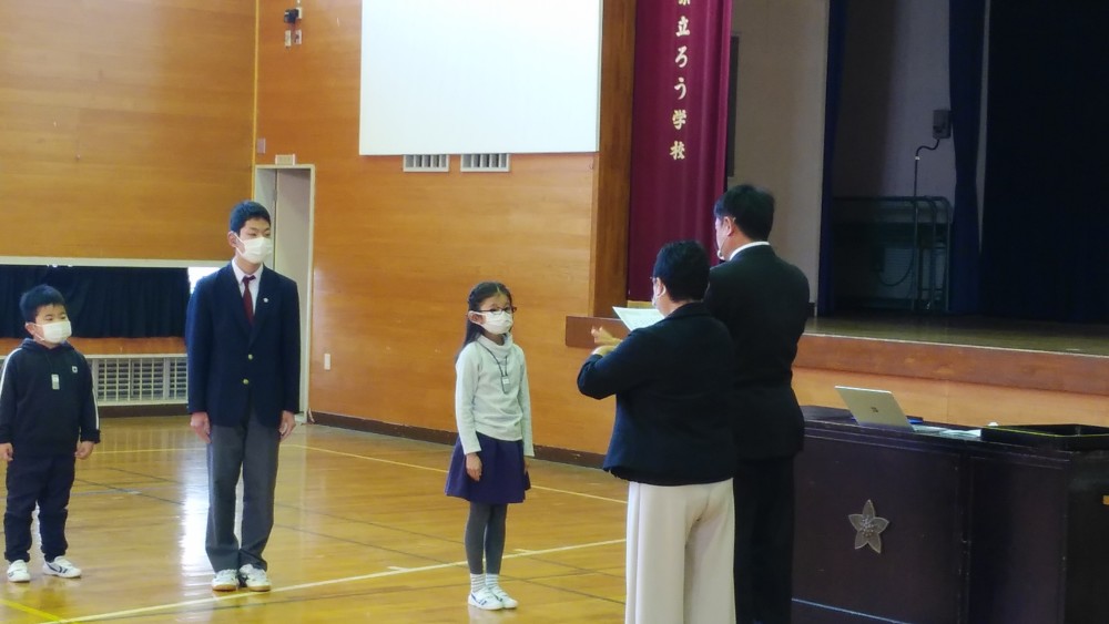 1月7日に体育館にて、3学期始業式と表彰式をおこないました。幼稚部から高等部まで皆さん元気に登校してくれました。大変よかったと思います。始業式では、岩崎校長先生から「皆さんあけましておめでとうございます。学習面、文化面、スポーツなどさまざまな面で頑張るろう学校生はすばらしいと思います。これからも頑張ってください。今年の夏は延期になっていたオリパラがおこなわれる予定です。そのコマーシャルで、【その挑戦が( )を変える】と言っています。さて( )には何が入るでしょうか? ( )には「未来」という言葉が入ります。挑戦とは難しいことや新しいことに立ち向かって行くことです。挑戦することによってさまざまなことが変わります。将来が変わるかもしれません。皆さんも、ぜひいろいろなことに挑戦してほしいと思います。」とお話がありました。また、2学期終業式でやりきれなかった表彰式を引き続きおこない、校内読書感想文コンクール、読字力検定試験、UTY教育美術展、山梨県障害者文化展などの入賞者や合格者に、校長先生から賞状や記念品が手渡されました。大変おめでとうございました。3学期もがんばりましょう。
