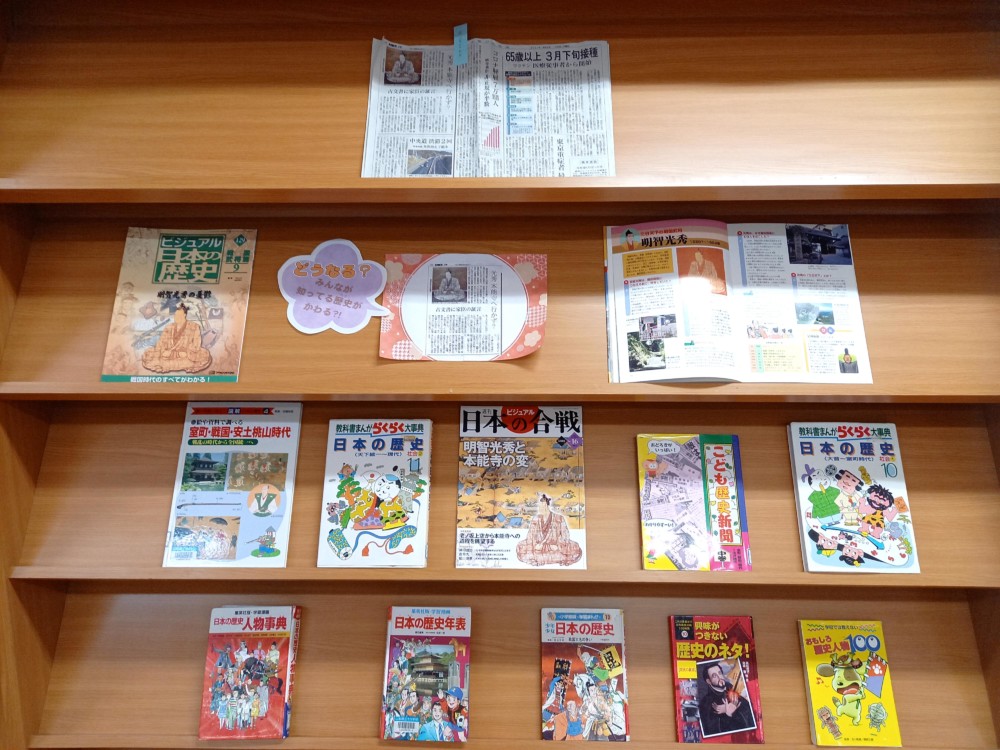 山梨県立ろう学校 > 活動の様子 > 新聞から興味を広げよう!(図書教養) 2021年1月14日カテゴリー: 活動の様子 新聞から興味を広げよう!(図書教養) 年明け早々、「明智光秀は本能寺に行かなかった?」という記事がでました。 歴史で学んだ「事実」が覆されるかもしれないというのは 驚きとともに、興味深くもありますね。 図書室ではこれまで「事実」として書かれていた本と このたびの新聞記事を同時に展示しています。 真実はこれから明らかにされていきますが、 興味を持った人はぜひ図書室へ足を運んでみてください。 新聞で気になったことを調べるのにも図書室は大いに利用できます。 本探しのお手伝いもしますので、声をかけてくださいね。
