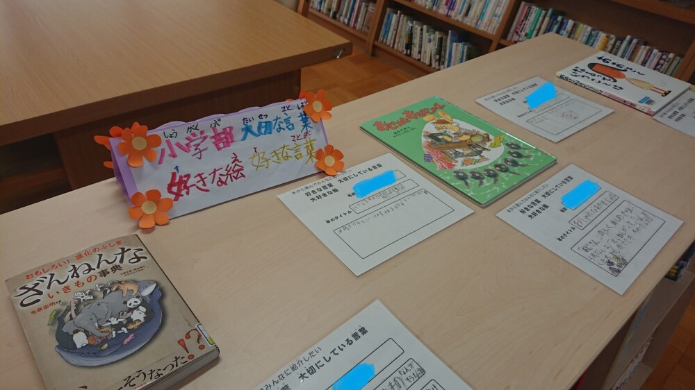 小学部の児童の「贈る言葉」が図書室に展示されています。