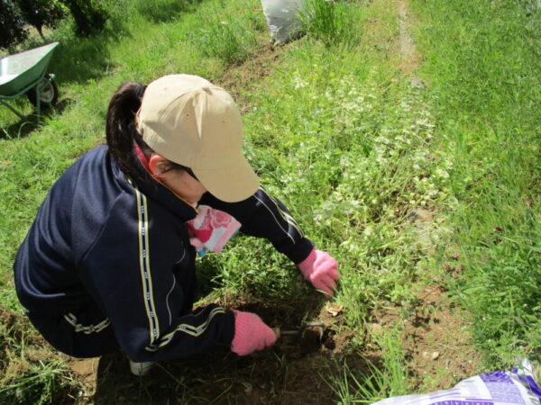 まずは草取りです。春休みの間に伸び放題となってしまった草は、かなりの量でした。