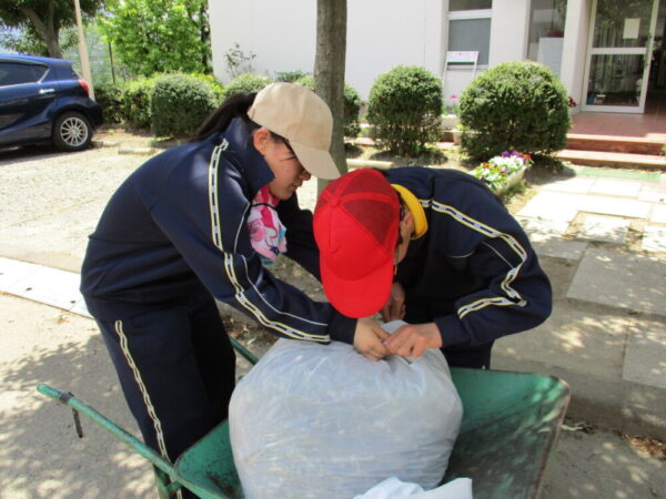 暑い日だったのですが、生徒二名は黙々と草を取り、地面がすっきり見えるようになりました。