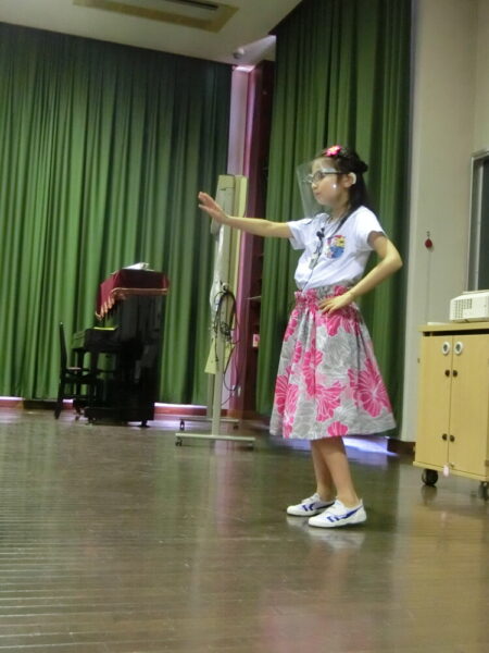 4月26日(月)に今年度初めての学部集会がありました。学部集会では、目標を話し合って決めたり、「たまてばこ」の発表をしたりします。「たまてばこ」は、相手に伝えることを目的に小学部全員が発表します。今回は6年生。「フラダンスについて」「韓国について」の発表でした。6年間の集大成となり、堂々と発表することができました。