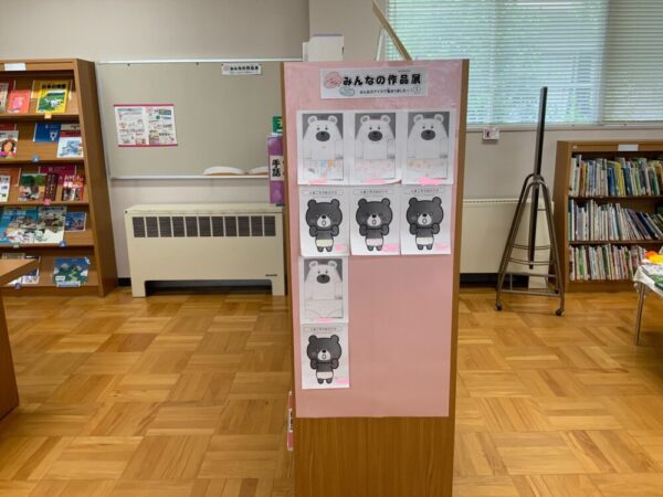 図書室ではしろくまと、くまごろう(図書室オリジナルキャラクター)が