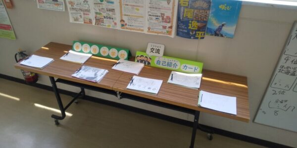 まずは、自己紹介カードの交換です。本校からは、自己紹介カードと、生徒作成のろう学校の紹介カードを届けました。
