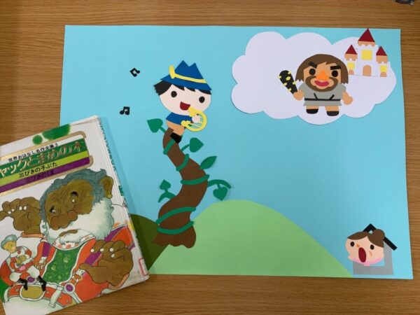 10月は図書室に「ジャックと豆の木」の飾りを作りました。