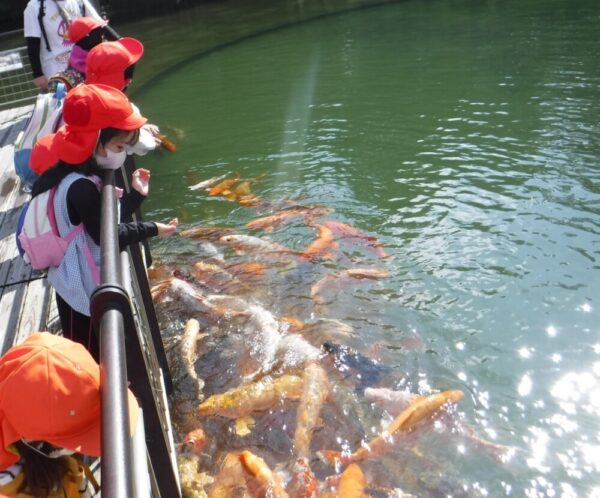 山梨県立ろう学校 > 活動の様子 > 幼稚部 秋の遠足 2021年10月20日カテゴリー: 活動の様子 幼稚部 秋の遠足 10月19日に幼稚部で金川の森公園に出かけました。 鯉に餌をあげた後、どんぐりやまつぼっくりを拾いました。たくさんどんぐりが落ちていたので、子どもたちは大喜びで夢中で拾って袋に入れていました。
