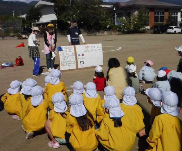 山梨県立ろう学校 > 活動の様子 > 幼稚部 加納岩保育園との交流 2021年10月21日カテゴリー: 活動の様子 幼稚部 加納岩保育園との交流 10月20日に加納岩保育園との交流を行いました。 はじめの会の後、白組、青組に分かれてボール運び、玉入れ、リレーをしました。 ボール運びでは、加納岩保育園の友達とろう学校の友達がペアになり、新聞紙にのせたボールを運びました。みんなで楽しく遊ぶことができ、よい交流になりました。