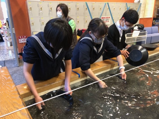 山梨県立ろう学校 > 活動の様子 > 中学部修学旅行② 2021年11月5日カテゴリー: 活動の様子 中学部修学旅行② 修学旅行2日目、元気にスタートしました。午前中は、甲斐黄金村湯之奥金山博物館で砂金採り体験をしました。係の方から砂金は重いので下の方にあることを教えていただきました。生徒たちは、砂金をたくさん取るため、何回もチャレンジしていました。砂金を発見すると、「やった‼︎」と歓声が上がっていました。身延山久遠寺では、287段、高低差100メールある階段登りにチャレンジしました。また、久遠寺のお坊さんの説明を聞きながら、仏殿等を見学しました。その後、仏様の心を感じながら写経を行いました。生徒たちは真剣に取り組んでいました。午後は、なかとみ和紙の里で手漉き和紙づくりの体験と西嶋手漉き和紙の製造工程を見学しました。体験では、手漉き和紙に好みの色を使って丁寧にデザインしました。2日間の修学旅行が無事に終了しました。生徒たちは、この2日間、体験的な学習に意欲的に取り組んだり、見学学習では積極的にメモを取ったり、疑問に思うことを質問するなど大変立派な姿が見られました。この経験を今後の学校生活に生かして欲しいと思います。生徒たちにとって、思い出に残る楽しい修学旅行になりました。皆さん、お疲れ様でした。