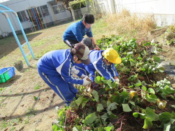 山梨県立ろう学校 > 活動の様子 > 小学部 さつまいも堀り 2021年11月20日カテゴリー: 活動の様子 小学部 さつまいも堀り 1学期に苗を植えたさつまいもが、すっかり大きくなったので 1,2年生でさつまいも堀りをしました。 どんな大きさか、掘るまでドキドキでしたが、大きくて立派なさつまいもが収穫できました。