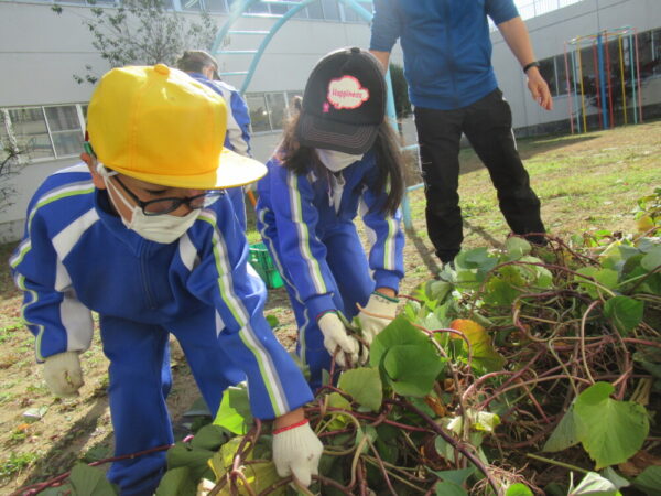 1学期に苗を植えたさつまいもが、すっかり大きくなったので