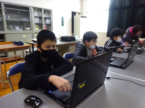 山梨県立ろう学校 > 活動の様子 > パソコンクラブ 2022年1月25日カテゴリー: 活動の様子 パソコンクラブ 4~6学年が、学期に1~2回程度でパソコンクラブを実施しています。みんな食い入るようにパソコンに向かい、真剣に興味津々で取り組んでいます。スクラッチのソフトを使い、思い思いにキャラクターを動かしています。