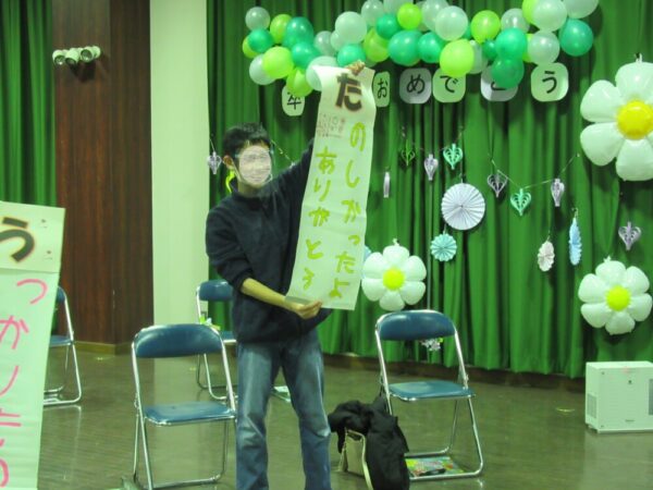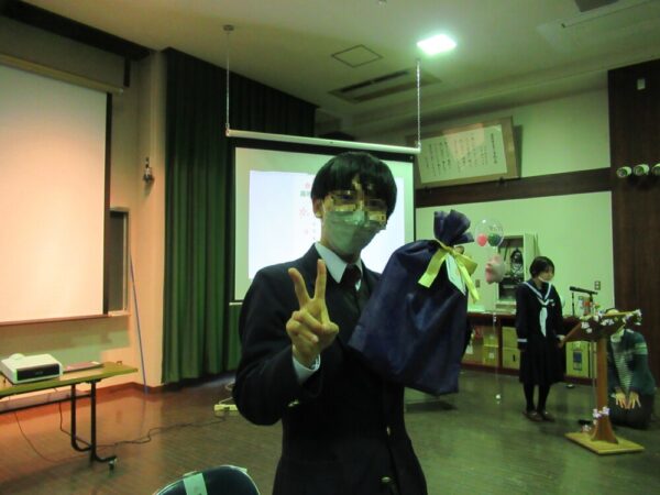 短時間でしたが、感染症対策をしながらみんなで楽しめるゲーム、思い出のビデオ上映、プレゼント贈呈を行い、楽しいひと時を過ごしました。