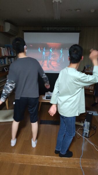山梨県立ろう学校 > 活動の様子 > 最近の舎生の様子 2022年5月18日カテゴリー: 活動の様子 最近の舎生の様子 最近の寄宿舎でのフリータイムの様子について紹介します。 以前よりパソコンやiPadで個々に好きな動画を楽しんでいた舎生たちですが 「大画面で見よう!」ということになり、プレイルームにプロジェクターとスクリーンを設置して それぞれ好きなMVをみんなで見たり、椅子に座ってリラックスしながら動画を鑑賞したりして楽しみました。 機器の設置や操作も舎生が積極的にやっています。 またある日は、みんなで鉄道運転シミュレーションゲーム「電車でGO!」をして楽しみました。 電車好きな舎生が多いこともあり大いに盛り上がりました。 個々に好きなことをして過ごす日もあり、みんなで一つのことを共有して楽しむ日もあり。 舎生たちからは「こうしたほうがいいよ」「次はこんなことやってみたい」などアイデアも出ています。 次はどんなことをするのかな?楽しみですね。