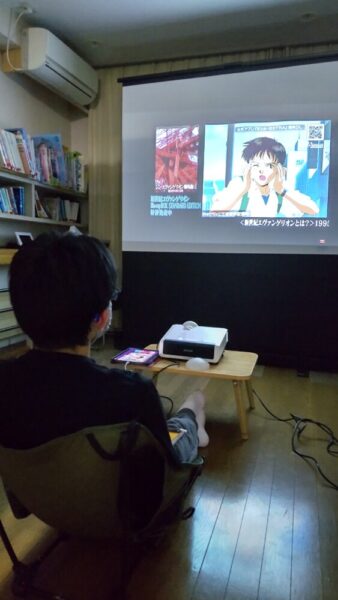 「大画面で見よう!」ということになり、プレイルームにプロジェクターとスクリーンを設置して