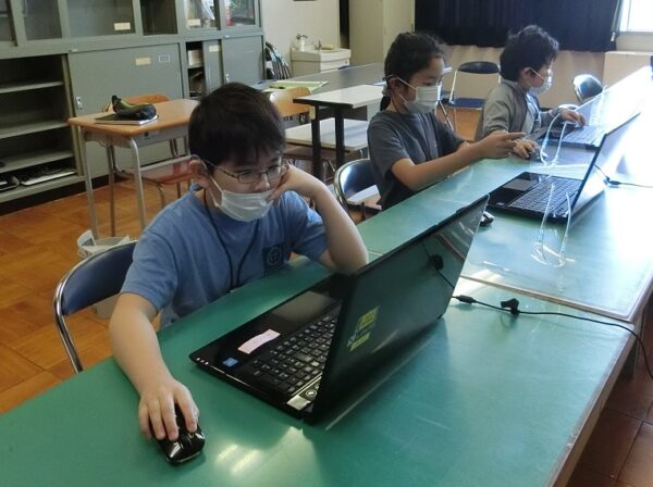 小学部では、4~6年生が、年間5回の予定でパソコンクラブの活動を実施します。5月23日に今年度初めてのパソコンクラブの活動が行われました。昨年度に引き続き「スクラッチ」というソフトを使ったプログラミングの学習で、みんな食い入るようにパソコンに向かいながら、思い思いにキャラクターを動かしています。