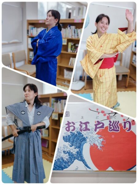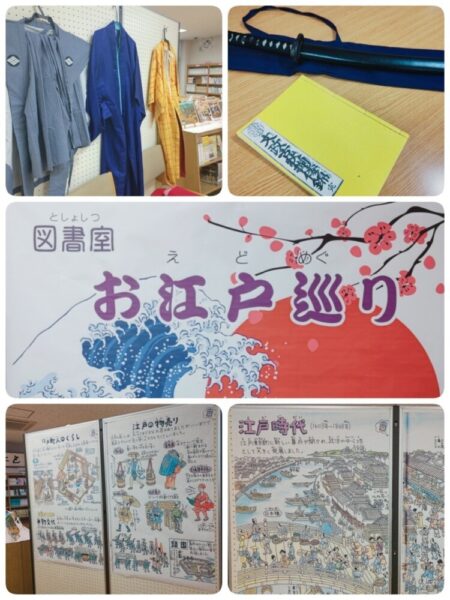 山梨県立ろう学校 > 活動の様子 > 読書活動推進月間① 2022年5月30日カテゴリー: 活動の様子 読書活動推進月間① 読書活動推進月間の一環として 図書教養行事「お江戸めぐり」が始まりました。 山梨県立博物館より「江戸時代キット」をお借りし 図書室に展示しています。 裃(かみしも)、町娘の着物、町人の衣装と太刀が展示されています。 寺子屋で使う本もお借りしています。 着て!見て!楽しんで! 密にならないように、写真を展示していきます。 ぜひご参加ください。
