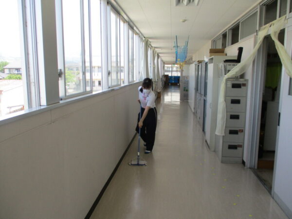 校内の清掃を暑い中頑張っています。