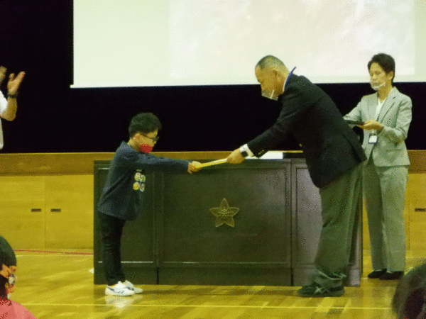 9月30日(金)、表彰式と前期終業式及び後期始業式が行われました。表彰式では、学園祭のテーマ及びシンボルマークの入賞者、読字力検定試験の合格者、UTY教育美術展の入賞者の表彰が行われました。前期終業式及び後期始業式では、校長先生から前期の活動を写真で振り返るとともに、「明日から始まる後期は学園祭をはじめ、いろいろな行事がありますが充実した学期にしよう」という話がありました。