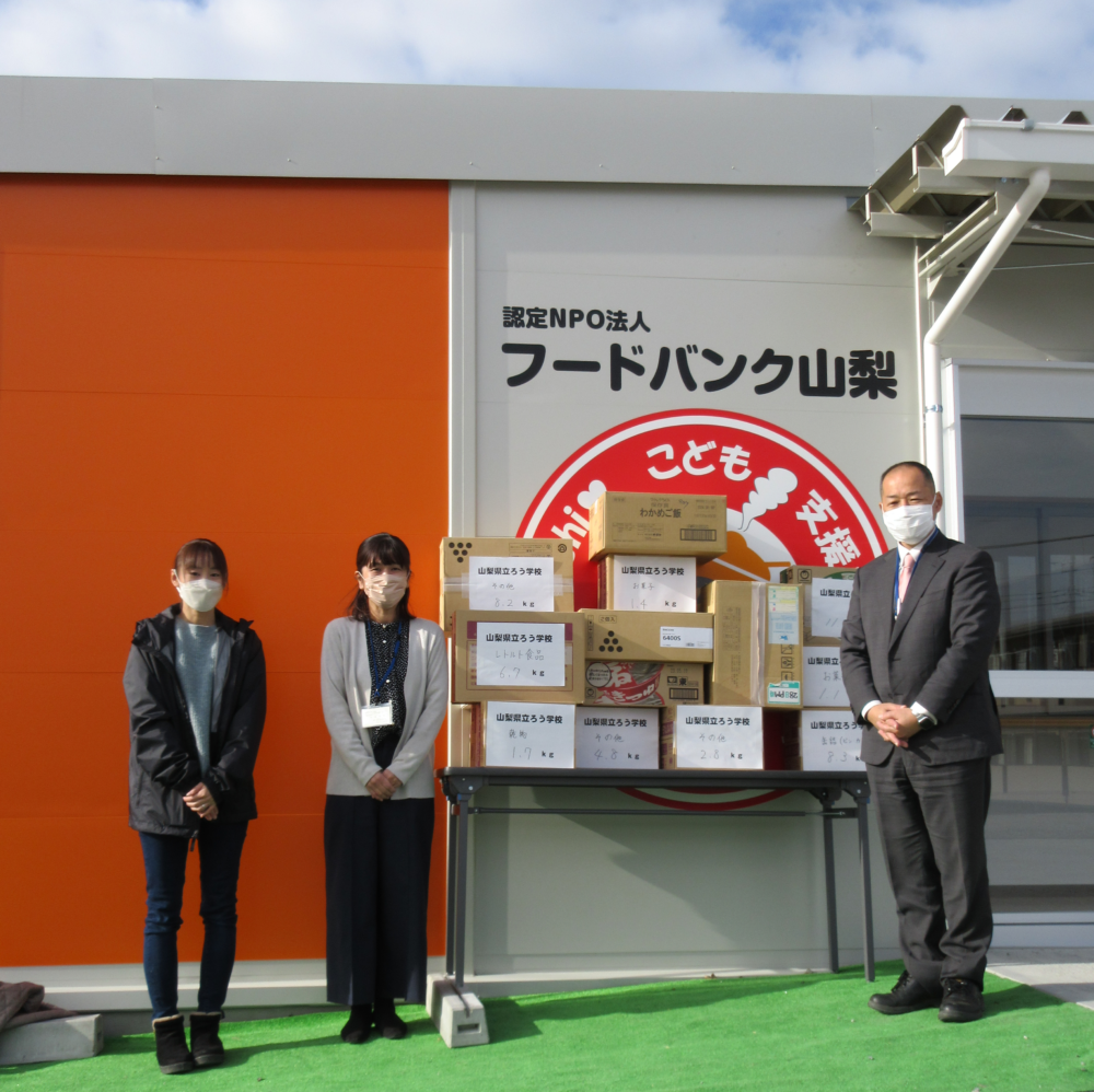 山梨県立ろう学校 > 活動の様子 > PTA活動 フードドライブ 2022年12月21日カテゴリー: 活動の様子 PTA活動 フードドライブ フードドライブで集まった食品を南アルプス市にある「フードバンク山梨」へ届けました。 冬休みに向けて緊急で支援が必要となっている、というお話を聞きました。 校内や地域の方々から寄せられた食品が、支援を必要とする方に早く届きますように。