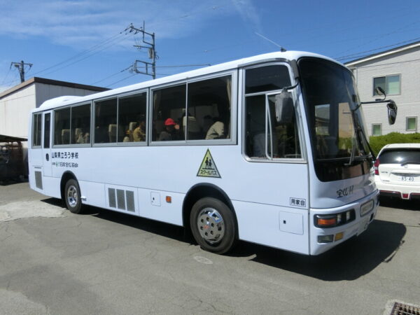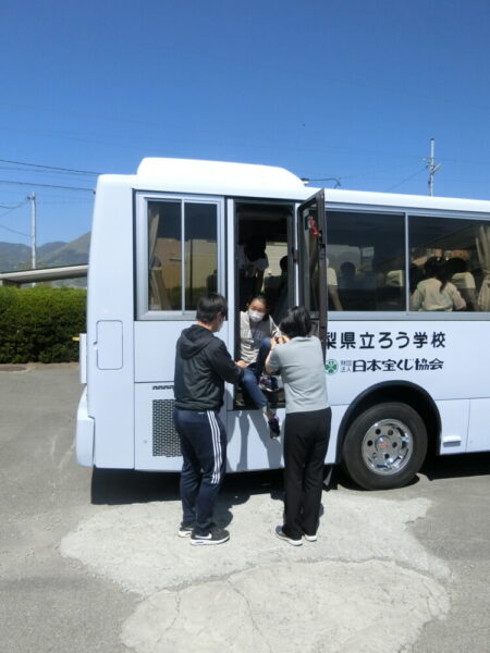 山梨県立ろう学校 > 活動の様子 > スクールバスの避難訓練をしました(小学部) 2023年4月29日カテゴリー: 活動の様子 スクールバスの避難訓練をしました(小学部) 校外学習や水泳などでお世話になるスクールバスですが、 もしもの時のための避難訓練を行いました。 事故、火災、地震など、いつ何が起きるかはわかりません。 避難訓練をし、いざというときに備えます。 バスに楽しそうに乗った子どもたちでしたが、避難の仕方を教わると真剣な顔になりました。 前の扉が開かなくなったことを想定し、後部の非常口から避難する方法を 試しました。高さがありますが、添乗員さんと教員に支えられながら 全員無事に避難することができました。 一年間、安全にスクールバスを利用していきます。