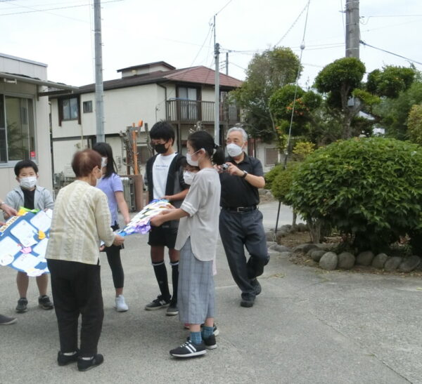 6月8日児童会役員が小学部の代表として晴風園へメッセージを届けました。小学部みんなで手紙を書いたり、折り紙を折ったりした作品をお渡ししました。