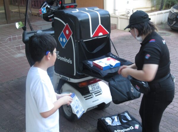 当日の食事はドミノピザのデリバリー。事前にアプリで注文をし、自分たちで店員さんとやりとりをして支払いを済ませました。店員さんの言っていることが分からなかったり、自分の言ったことが店員さんに伝わらなかったり…そんな経験もできました。