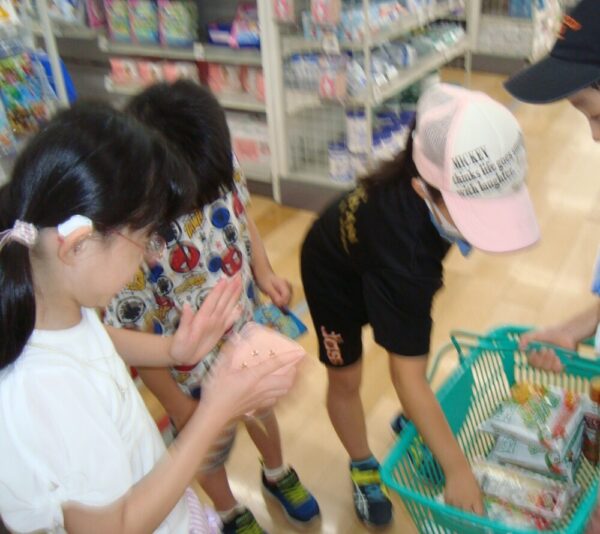 ために山梨市にあるベイシアに行き、働く人の仕事内容や工夫について一緒に学習しました。買い物体験もしました。