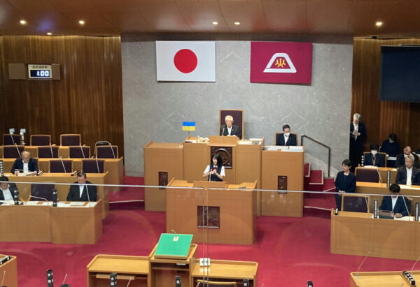 山梨県立ろう学校 > 活動の様子 > 高校生議会 2023年8月3日カテゴリー: 活動の様子 高校生議会 8月1日(火) 山梨県議会議事堂で高校生議会が開催され、県内15校の代表生徒が、山梨県議会議員の方の前で、山梨県の将来に向けた提言をしました。本校からは生徒会副会長の鈴木さんが参加し、『手話言語の普及啓発について』をテーマに提言をしました。独特の緊張感に包まれる議事堂内でしたが、堂々とした発表でした。とても貴重な主権者教育の機会を得ることができました。