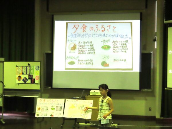 後半の1・2年生の生活発表会では、夏休み中に体験したり学んだりしたことを、みんなの前で発表しました。