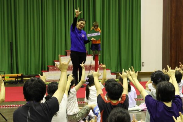 小学部や中高等部の児童・生徒だけでなく、一緒にみていた教職員も、あいちゃんの演技のすごさと手話のかわいらしさにすっかり心を奪われました。大技に挑戦するあいちゃんがしり込みする様子をみて、児童・生徒からは自然に「頑張って。」と励ましの声がかけられました。今回のテーマ「あきらめない気持ちが大切」もしっかり伝わってきました。