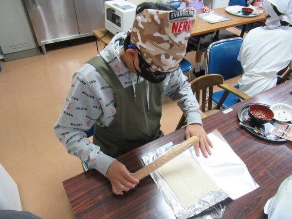山梨県立ろう学校 > 活動の様子 > ハッピーハロウィンat寄宿舎♪ 2023年11月2日カテゴリー: 活動の様子 ハッピーハロウィンat寄宿舎♪ 10月31日に行った、寄宿舎でのハロウィンの様子を紹介します。 まずはミートパイづくりをしました。パイ生地を伸ばしたり、ジャックオーランタンの型抜きをしたり、それぞれ楽しくクッキング!トースターで焼いたミートパイ。美味しくできました★ 夜は仮装して写真撮影。 パンダとジェイソンの対決!?ガイコツ登場!?など、各々好きな衣装に着替え、楽しいひと時を過ごしました。
