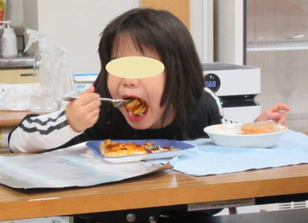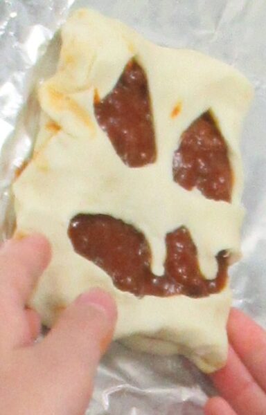 まずはミートパイづくりをしました。パイ生地を伸ばしたり、ジャックオーランタンの型抜きをしたり、それぞれ楽しくクッキング!トースターで焼いたミートパイ。美味しくできました★
