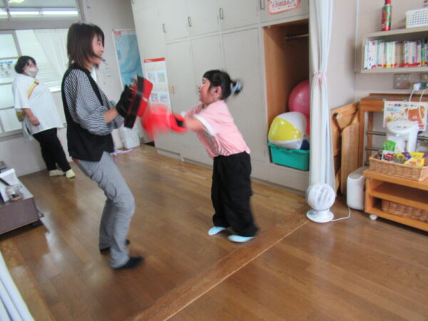 本物?の車掌さんに見える職員と電車ごっこで、各場所を駅に見立ててスタンプラリーをしながら寄宿舎内を回りました。ヒントをたよりに隠されたスタンプを探し、スタンプを見つけると歓声をあげていました。スタンプラリー最終駅のプレイルームで職員とボクシングやじゃんけんぴこぴこハンマーたたきなどをして楽しく遊びました。体験した児童からは「楽しかった。また来たい。」との感想がありました。