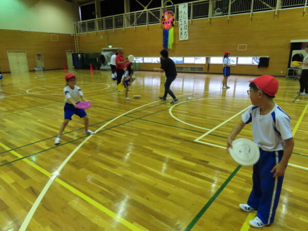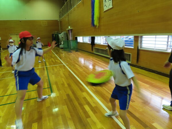 小学部のいきいき教育として、講師の先生をお招きし、アルティメットの体験をしました。