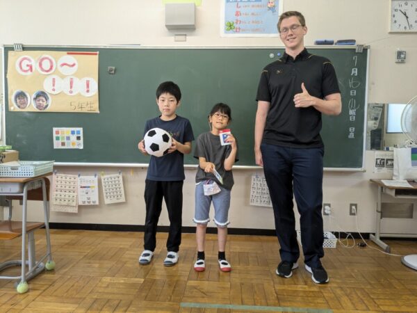 小学部では、クーパー先生と一緒に的当てや神経衰弱などのゲームを楽しみました。また、クーパー先生がアメリカのおすすめのものを、児童が日本のおすすめのものをそれぞれ英語で紹介し合い、お互いに知らない名所や名物について知ることができました。