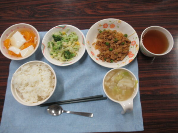 舎生が考えたメニューを栄養士さんに見てもらい、栄養バランスの面から食材の追加や変更などを加えて提供してもらいました。