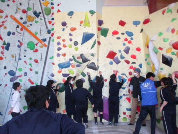 2月27日(木)、中学部・高等部の体育授業の一環で、クライミングジム「ピラニア」でボルダリング体験を行いました。最初は少し怖がっていた生徒もだんだんと慣れ、それぞれの生徒に応じた課題や少し難しい課題に繰り返し挑戦しました。終了後には、普段使っていない筋肉を使い疲れた様子でしたが、達成感や満足感でとても良い表情をしていました。感想では、「楽しかった」「卒業後にも来てやりたい」などの声が聞かれました。貴重な経験ができました。