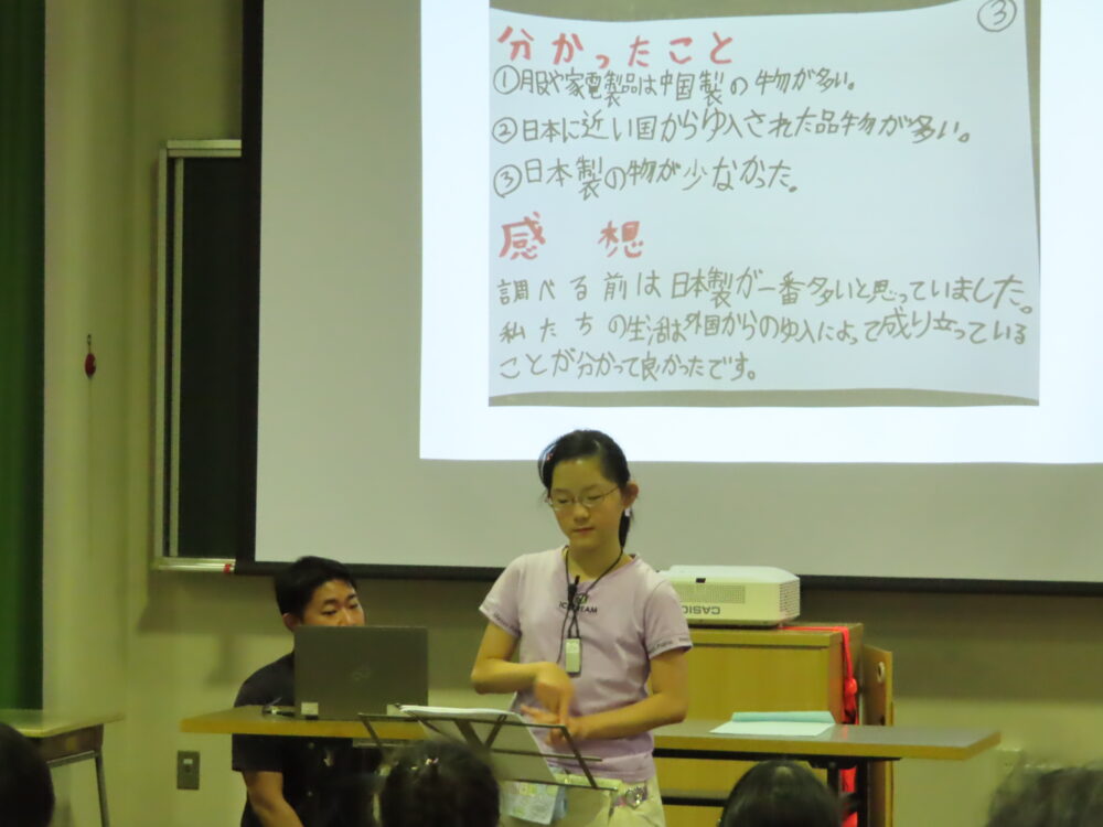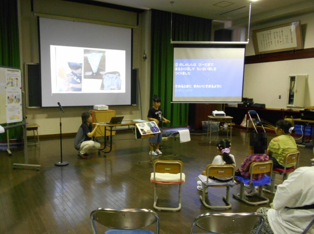 友達や先生に向けて、夏休みに経験したことを発表しました。
