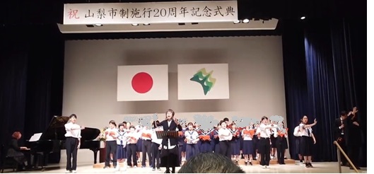 山梨市制20周年記念式典への参加(中学部)