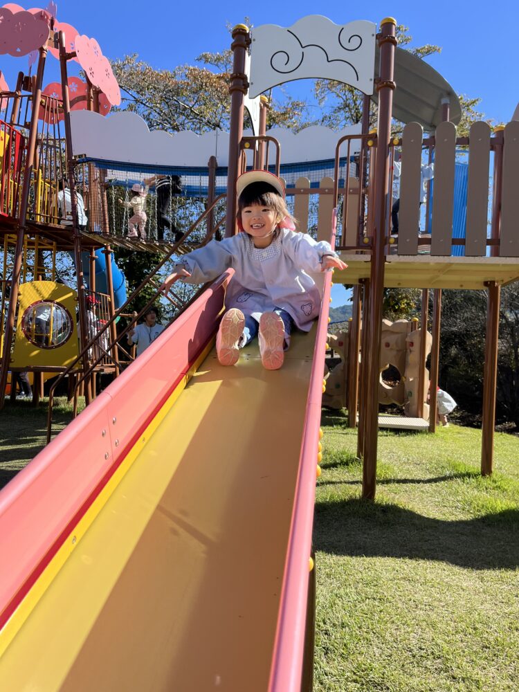 山梨県立ろう学校 > 活動の様子 > 幼稚部 秋の遠足 2025年10月29日カテゴリー: 活動の様子 幼稚部 秋の遠足 先週、行けなかった秋の遠足。今週は天気に恵まれ、気持ちのいい天気の中行くことができました。 朝は少し肌寒かったですが、遊び始めると暑くなり、半そでになる友達もいました。 お弁当やおやつタイムも楽しみ、帰りのバスでは寝てしまう子もいました。 楽しい遠足になり、大満足の一日でした。
