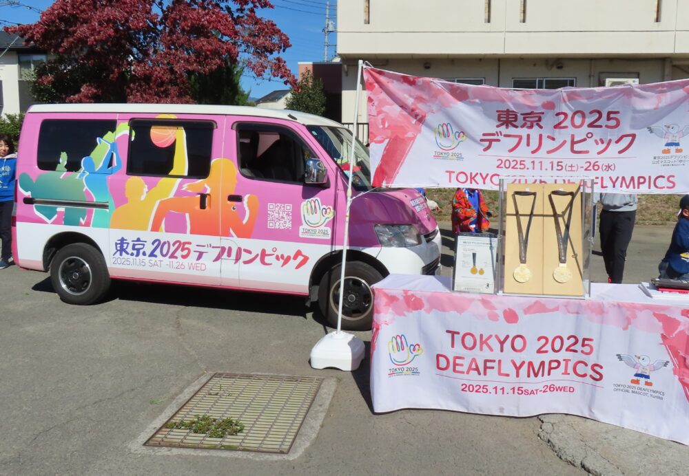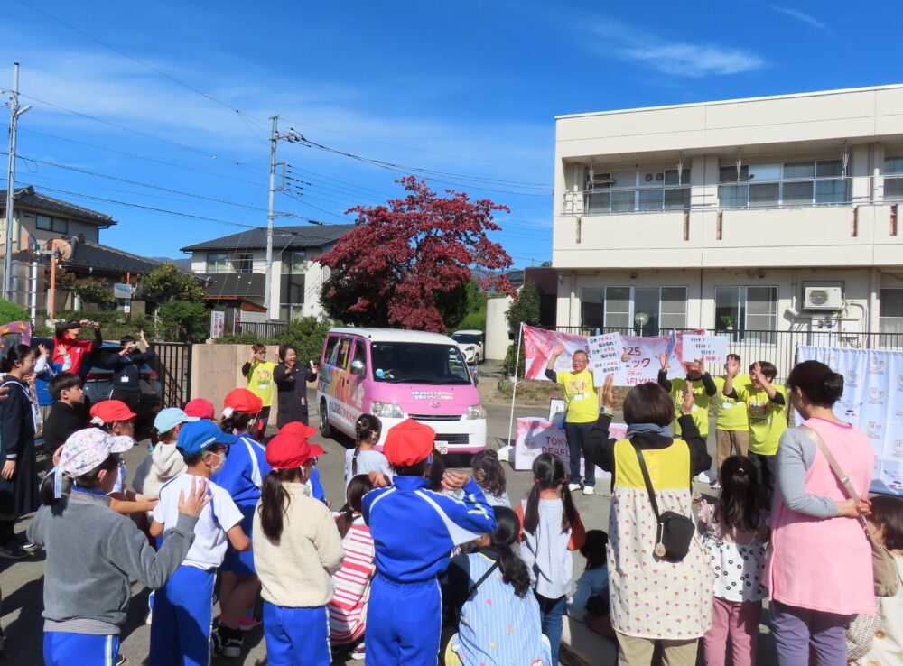 東京デフリンピックのキャラバンカーが来校しました。幼児児童生徒全員で出迎え、デフアスリートを応援する「サインエール」を、心を込めて届けました。デフリンピック開催まであと数日となりました。
