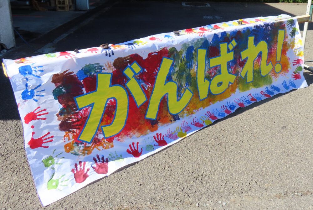 応援旗と寄せ書きを制作しました。
