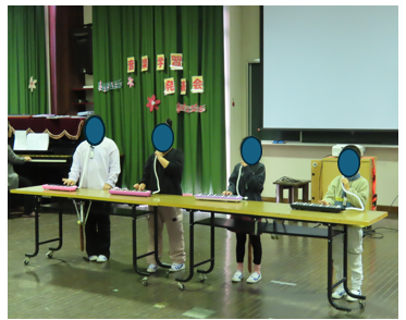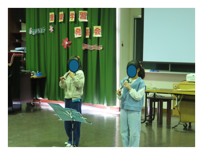 児童は、これまで音楽の授業で取り組んできた歌や合奏を披露し、音楽の楽しさが伝わってくる発表会となりました。工夫の凝らされた各々の発表に、聴き入っていました。