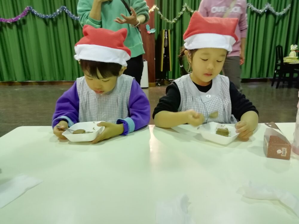 最後にお楽しみのケーキを食べ、大満足のクリスマス会でした。