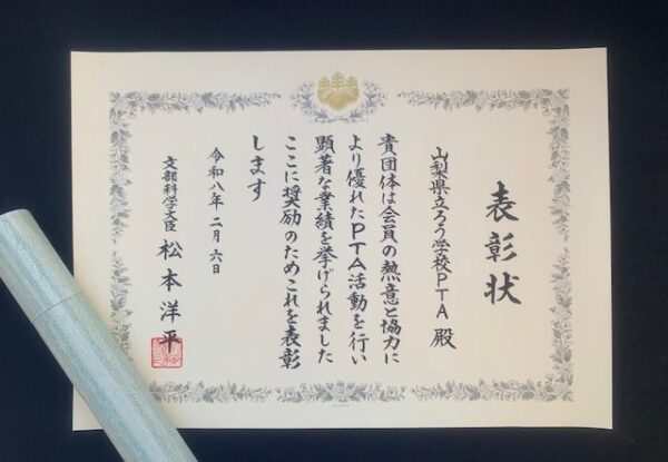 2月6日(金)、本校PTAの活動が文部科学省より表彰されました。おめでとうございます。