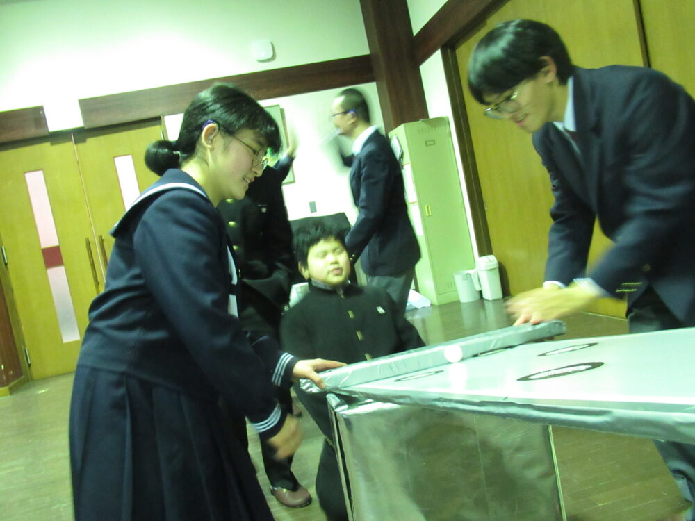山梨県立ろう学校 > 活動の様子 > 【寄宿舎】高3生を送る会 2026年3月17日カテゴリー: 活動の様子 【寄宿舎】高3生を送る会 〇レクリエーション 「落とし穴を乗り越えようゲーム」を舎生チームと保護者チームに分かれて、それぞれペアになってボールを穴に落ちないようにバランスを取りながら、ゴールを目指し協力しあって取り組みました。ゴールするたびにチームで盛り上がり、和やかな雰囲気の中で卒業生と共に楽しむことができる時間となりました。 〇あるある動画・スライド 寄宿舎の生活の中で見る高3生のあるある動画が流れると、卒業生も思わず笑っていました。スライドでは、入舎当初の自分たちの寄宿舎での生活の様子が流れ、思い出を振り返り、懐かしんでいる様子でした。 〇記念品贈呈 卒業生が喜びそうな記念品を舎生たちで考え記念品を贈呈しました。贈呈する際には、一人ひとりが、卒業生に感謝の思いを伝えました。担当の先生からもメッセージとともに、卒業後に役立つプレゼントが手渡されました。 〇卒業生、卒業生保護者あいさつ 卒業生から一人ひとりに良いところや思い出のエピソードなどを踏まえて後輩たちへ熱い思いを語ってくれました。卒業生の保護者からは、涙ながらにこれまでの寄宿舎生活を振り返りながら、成長できたことに感慨深い思いを語られていました。