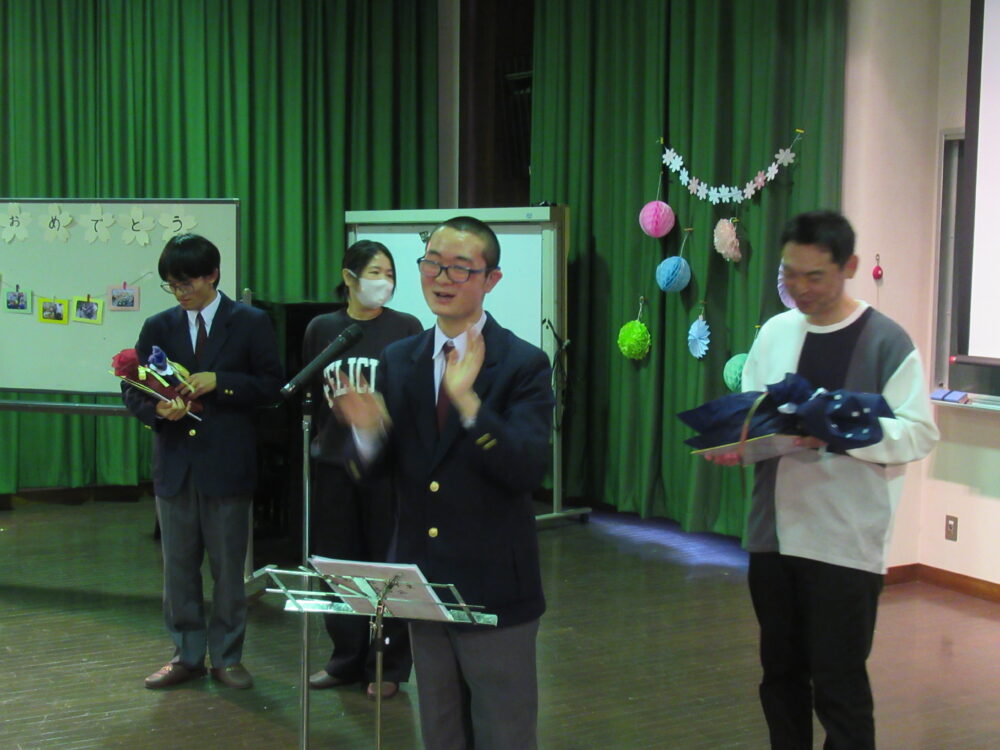卒業生から一人ひとりに良いところや思い出のエピソードなどを踏まえて後輩たちへ熱い思いを語ってくれました。卒業生の保護者からは、涙ながらにこれまでの寄宿舎生活を振り返りながら、成長できたことに感慨深い思いを語られていました。